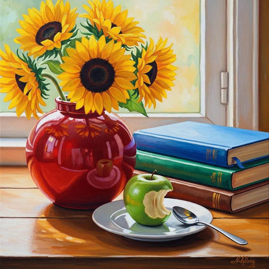 A warm still life composition showcasing advanced color mixing and confident brushwork in capturing seasonal abundance.